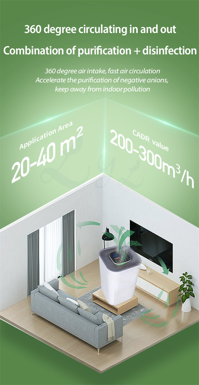 Aiming at the domestic harsh environment ,through multiple purification systems to efficiently remove smog(PM2.5),formaldehyde,bacteria,peculiar smell, second-hand smoke,dust,TVOC,mites.
